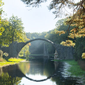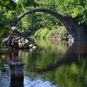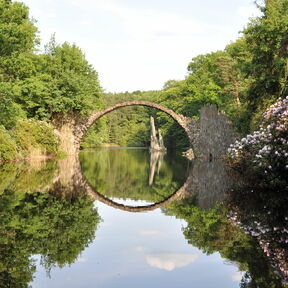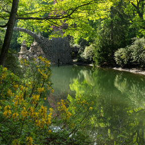 Eingebettet in die eindrucksvolle Landschaft des Muskauer Faltenbogens, liegt der Rhododendronpark Kromlau inmitten des Landschaftsschutzgebietes „Kromlau-Gablenzer Restseengebiet". Besonders, wenn sich zur Blütezeit der immergrünen Rhododendron und sommergrünen Freilandazaleen der Park in ein Blütenmeer verwandelt, ist Kromlau Anziehungspunkt für zahlreiche Besucher aus Nah und Fern. Doch auch die von Friedrich Herrmann Rötschke geschaffenen Basaltensembles in der Parklandschaft – im Besonderen die einzigartige Rakotzbrücke – erlangen einen immer größeren Bekanntheitsgrad. Unzählige Fotos der mystisch anmutenden Brücke finden sich mittlerweile im Internet.